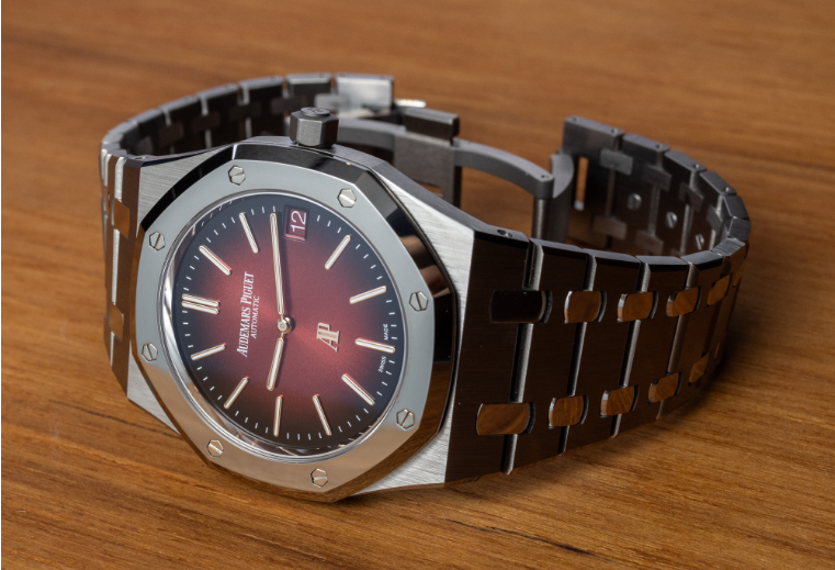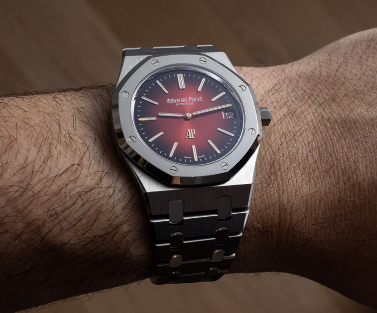 I tillegg til å forvente mer bulk metallisk glass i fremtiden, forventer jeg også at flere rødfargede og burgunderfargede skiver kommer snart. Ikke bare fra Audemars Piguet, men andre merker. Så det gjør denne spesielle røkt burgunder, bulk metallisk glass palladium og titan Royal Oak «Jumbo» Extra-Thin 39 mm litt av en trendsetter. Prisen for denne replika klokker erfaring Audemars Piguet Royal Oak-referansen er 16202XT.OO.1240XT.01 er $96 400 USD.