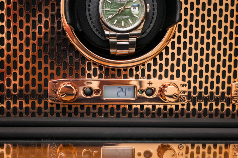 I tillegg til å øke bekvemmeligheten og tilgjengeligheten til samlingen din, synes noen entusiaster også at klokkespoler er nyttige på grunn av de mekaniske fordelene de kan tilby. Konstant drift av nedskruede kroner kan føre til ekstra slitasje på gjengene og pakningene til enhetene deres, og noen klokker med komplekse kalendermekanismer kan til og med få de interne komponentene skadet ved å være feil innstilt eller justert. Sammen med å måtte vurdere alle de samme faktorene som går inn i valg av en klokkeboks, er opprullere også motoriserte enheter, og de kommer derfor med flere funksjonelle hensyn. Utover størrelsen på en opprullingsmaskin,beste klokke kopi estetikk og om de har noen ekstra skuffer eller oppbevaringsrom, må den elektriske motoren som driver opprulleren også kunne konfigureres til de forskjellige klokkene i samlingen din. Dessuten er ikke klokkebokser og opptrekkere gjensidig utelukkende lagringsløsninger, og det perfekte oppsettet for din egen samling kan innebære en kombinasjon av begge alternativene eller til og med bruk av en av WOLFs klokkesafer i verdensklasse, som kan inneholde opptil tjue individuelle opprullingsspor og representerer det perfekte alternativet for samlere som eier flere verdifulle ur og krever maksimal sikkerhet.