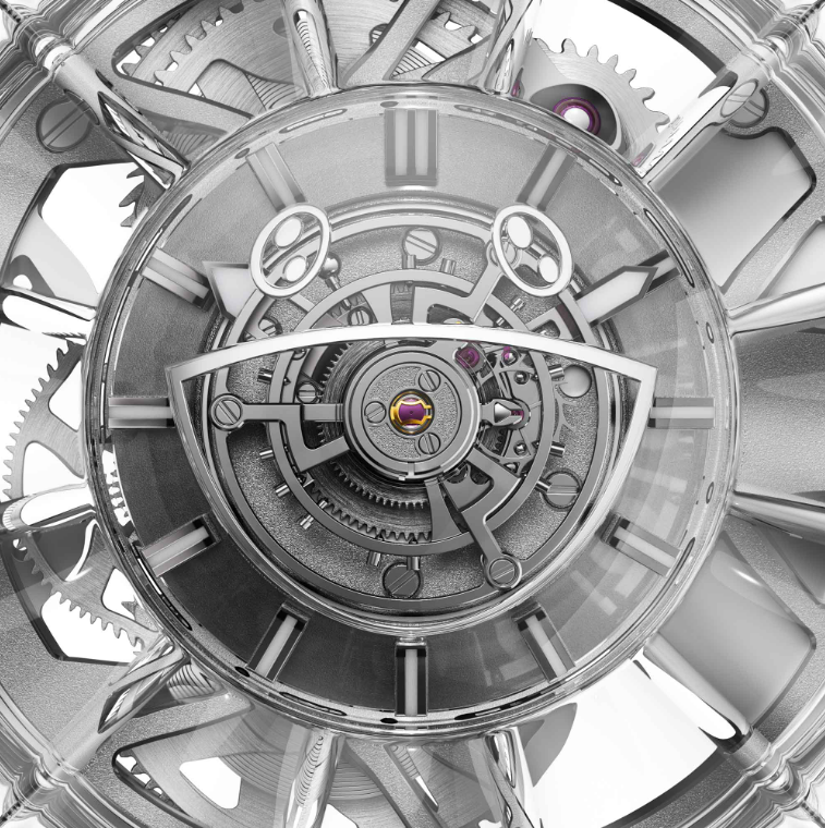 Siden den nye replika klokker Hublot MP-15 Takashi Murakami Tourbillon Sapphire i hovedsak er den fullstendig gjennomsiktige versjonen av klokken som debuterte for Only Watch 2023, er den nye begrensede utgaven drevet av den samme interne Cal. HUB9015 manuell vindbevegelse, som hublot kopi laget spesielt for å oppfylle Murakamis forespørsel om å samarbeide om en sentralmontert tourbillon-klokke. 236-komponenten Cal. HUB9015 kjører med en frekvens på 21 600 vph (3 Hz) med en strømreserve på omtrent 150 timer, og denne ganske imponerende varigheten av autonomi er muliggjort av de to seriemonterte hovedfjærtønnene.