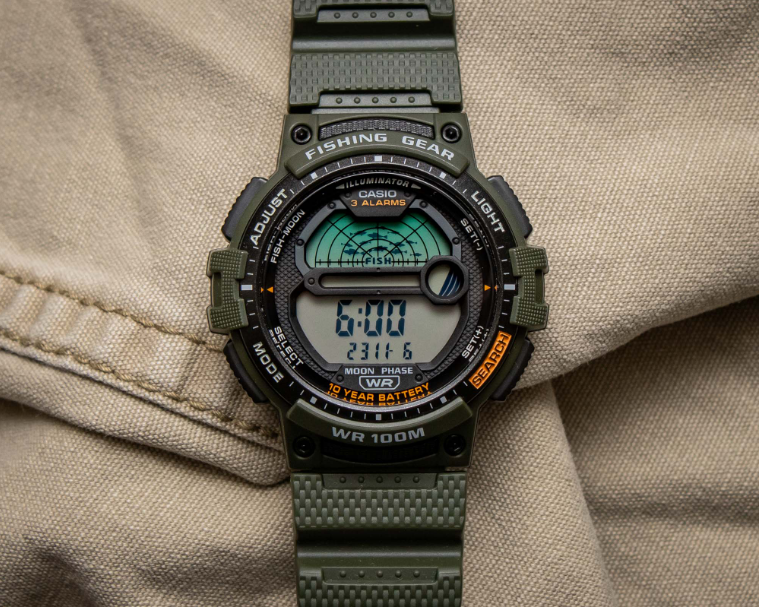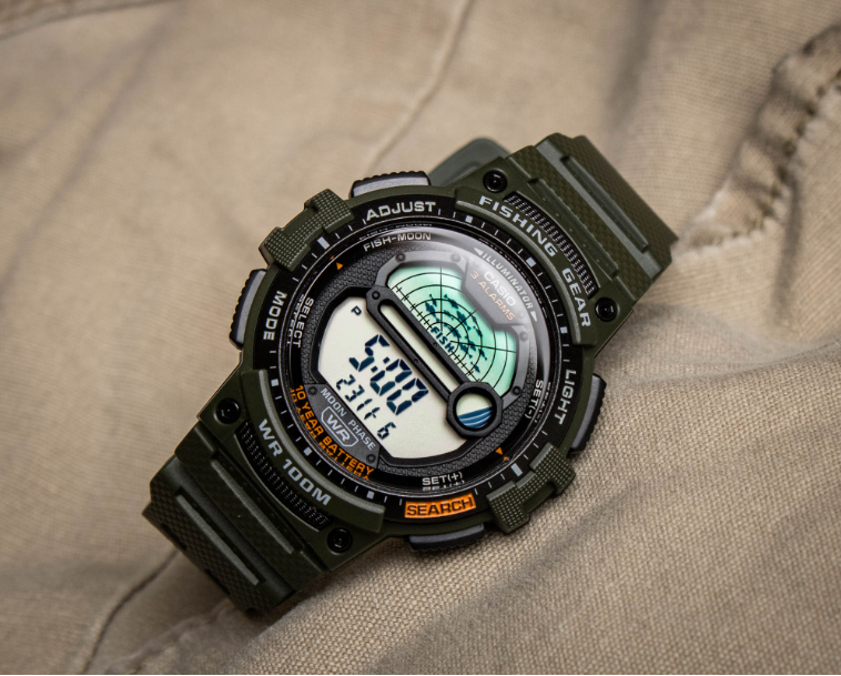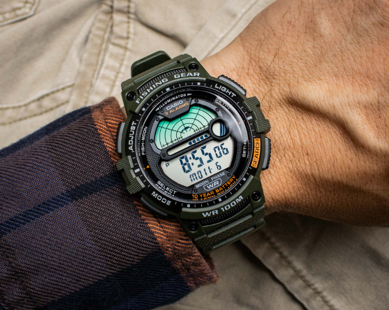 Som andre typer verktøyklokker, selv når vi faktisk ikke krever deres spesialbygde funksjonalitet, er disse Replika Casio-modellene fortsatt fascinerende klokkeobjekter fordi de representerer det japanske merkets unike tilnærming til en situasjonsspesifikk oppgave. Gjennom årene har det vært et overraskende utvalg av Casio-modeller som adresserer et sjokkerende mangfold av bruksområder, og innenfor merkevarens arkiver finner du modeller som lar deg gjøre alt fra å bytte kanal på TV-en til å måle kraften og hastigheten på slagene dine. Selv om Casio ikke lenger produserer mange av de mer obskure spesialbygde modellene, er en serie som fortsetter å holde ut merkets fisketimerserie, og kopi klokker Casio Fishing Gear WS1200H er en budsjettvennlig sportsklokke som tar sikte på å fortelle deg de beste tidene fisk hele dagen.
